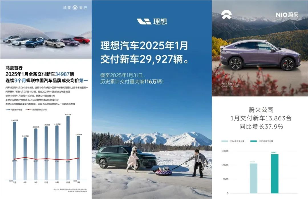 鸿蒙智行、小鹏、理想和蔚来也迅速刷新1月份业绩——这是一份和以往都不太一样的排序。鸿蒙智行如愿以偿霸占头牌,小鹏取代蔚来和理想。吉利银河直奔10万辆,变化来得如此气势汹汹。