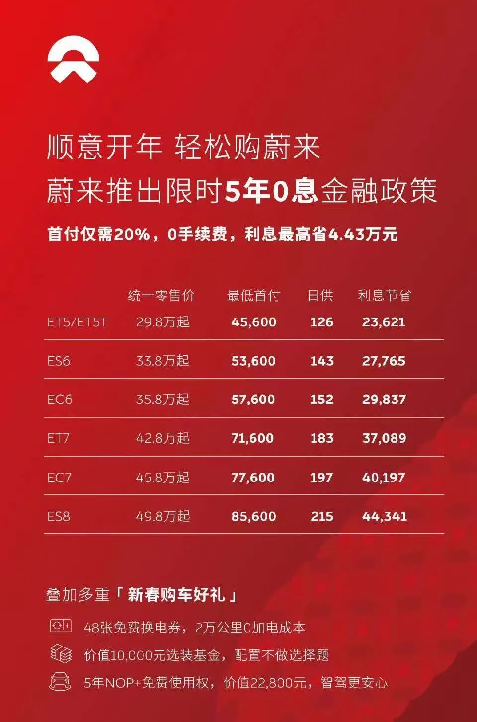 相比之下,1月交付量不算太过亮眼的蔚来,实际上早在春节假期期间,同样祭出了自己的最新限时销售政策。