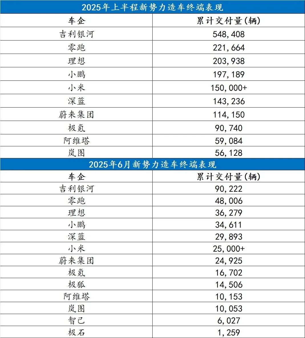 看到这里,或许会有读者好奇,为何没有提及“鸿蒙智行”?主要由于上半年其并未公布全部月份的交付量。