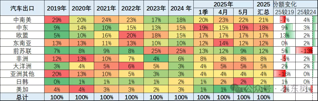 根据乘联会秘书长崔东树整理的海关总署相关数据,今年前5个月我国共出口汽车283万辆(含乘用车和商用车,涵盖新车和二手车),同比增长16%,其中伊朗和以色列所在中东地区占比为18%,相当于50.9万辆左右。今年,这一数字仅次于中南美的21%,换言之中东地区是近期我国汽车出口第二大海外区域市场。