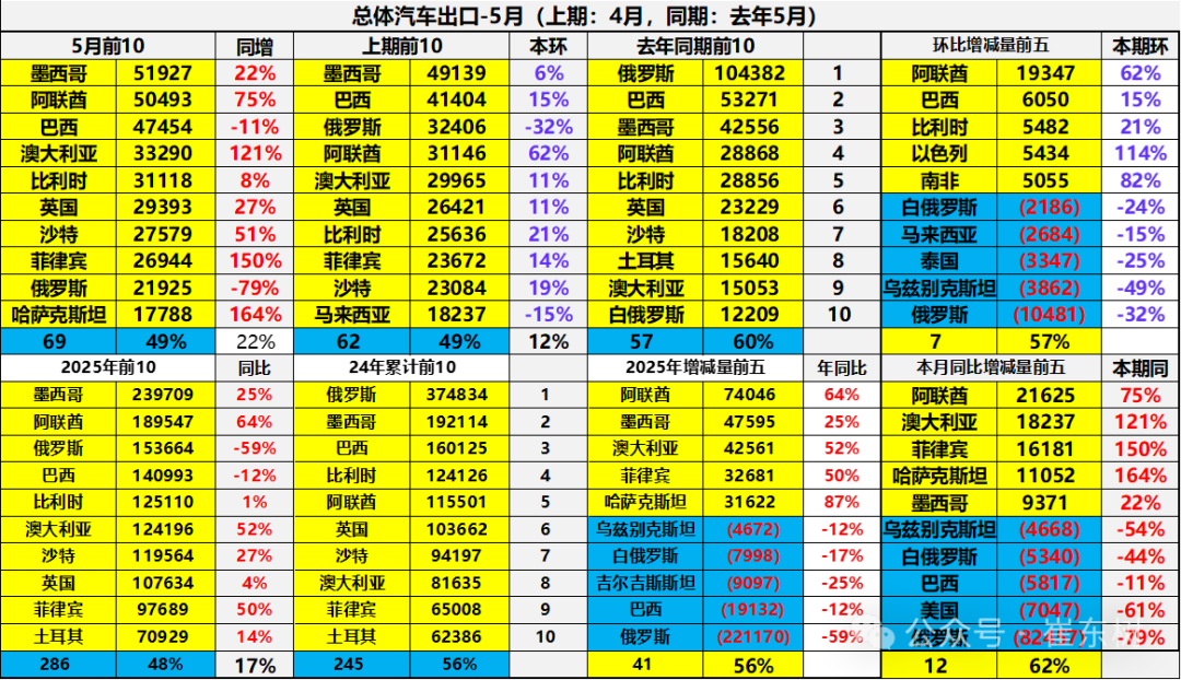 数据显示,今年前5个月我国出口到阿联酋的汽车总量为19.0万辆,同比增长64%;沙特为12.0万辆,同比增长27%;土耳其为7.1万辆,同比增长14%;三者的排名分别是第2、第7和第10。