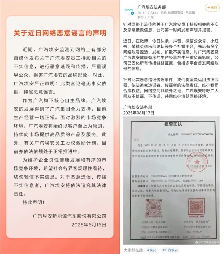 其主要意思就是,此类言论毫无事实依据,纯属恶意谣言。作为广汽旗下核心自主品牌,广汽埃安的发展得到了广汽集团全力支持,目前生产经营一切正常。面对激烈的市场竞争环境,广汽埃安将始终以客户至上为原则,持续向市场提供高品质的产品及服务。此外,有关广汽埃安员工股权激励计划,目前亦依法依规处于正常推进中。
