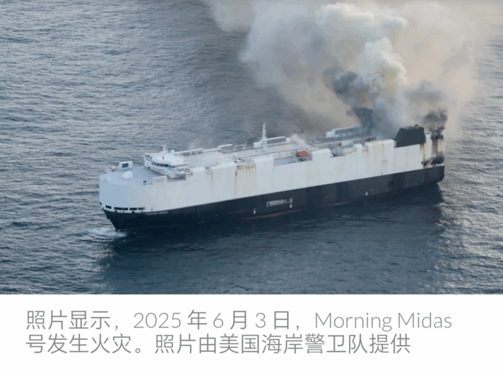 据报道,一艘装载大约3000辆新车辆的「晨光 midas」号货轮,于本月三号深夜在太平洋中心区域不幸发生火灾事故,其中船上有约800台电动车。