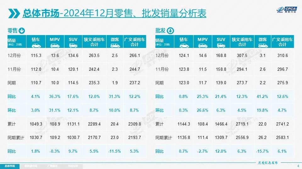 要知道,2024年上半年,新车零售销量曾连续走跌,8月甚至降幅达到了7.3%。但自从9月开始“加码”,当月便实现同比转正,接下来的10月、11月、12月,增幅进一步扩大,慢慢呈现出积极向好的态势。