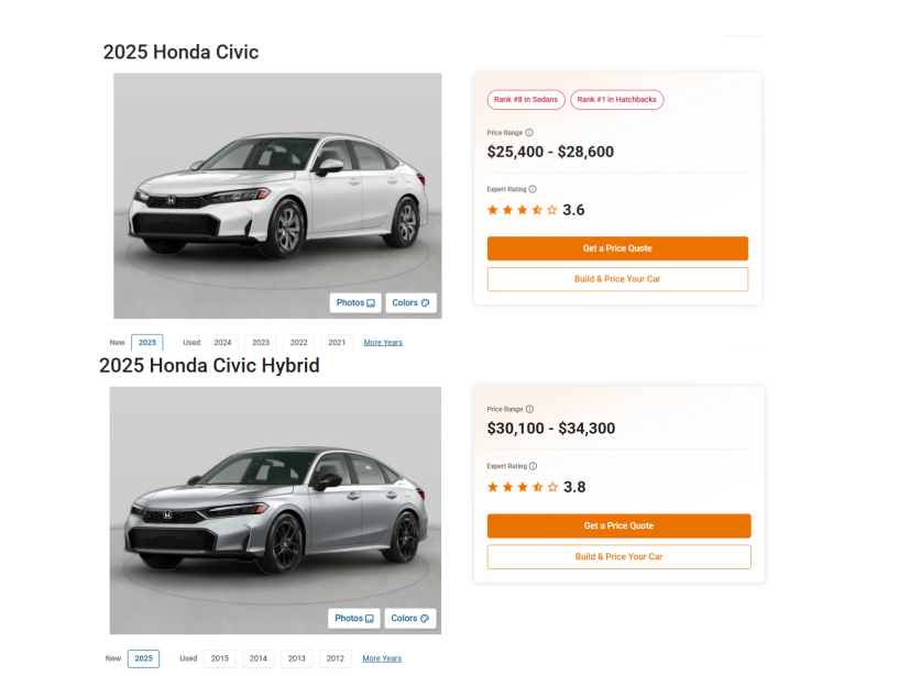 与此同时,大洋彼岸正上演着不一样的戏码。美国新车二手车信息平台CarsDirect显示,2025 Honda Civic起售价为2.54万美元,以7.22的汇率计算,折合人民币18.34万元,比国内12.99万元的厂商指导价高出5万元之多。
