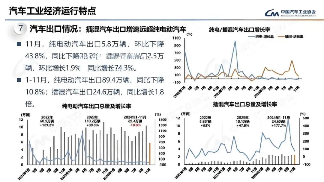 2024年前11个月,中国新能源乘用车出口182.34万辆,同比增长17.5%。按照海关总署统计口径,2024年我国新能源汽车出口量首次突破200万辆。海关总署在介绍时表示,“俗话说‘条条大路通罗马’,如果把这些新能源汽车首尾相连,可以从北京到罗马。”