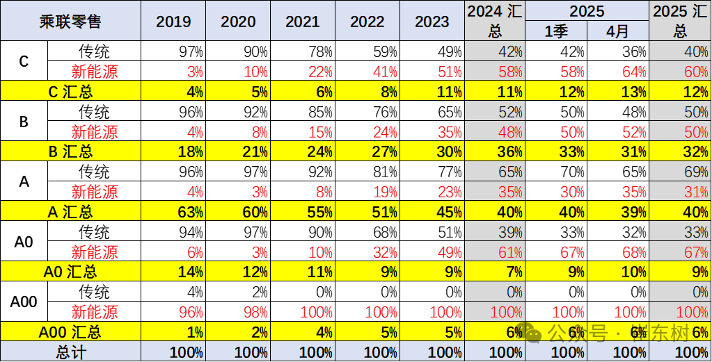 今年1-4月份,在A级车市场,传统能源销量占比为69%,新能源销量占比为31%。