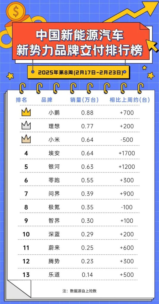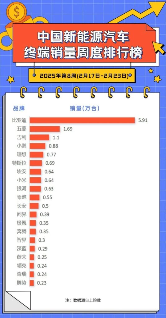 比亚迪遥遥领先,单周6万辆的数据,淡季国内保单月25万辆左右没问题,智驾版本上市后反弹式的热销尚未体现。