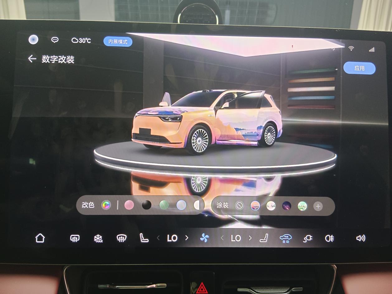 更为有趣的是,问界M8搭载的车机界面全面升级,可实现全车屏幕随心定义,主题包括星辉主题、萌宠主题,另可选择山川、花园、城市等主题。此外,长按主控屏的汽车小模型,即可进入调整电子车模外观,用户可自行上传图片,为爱车贴上电子车衣,实现“痛车”自由。