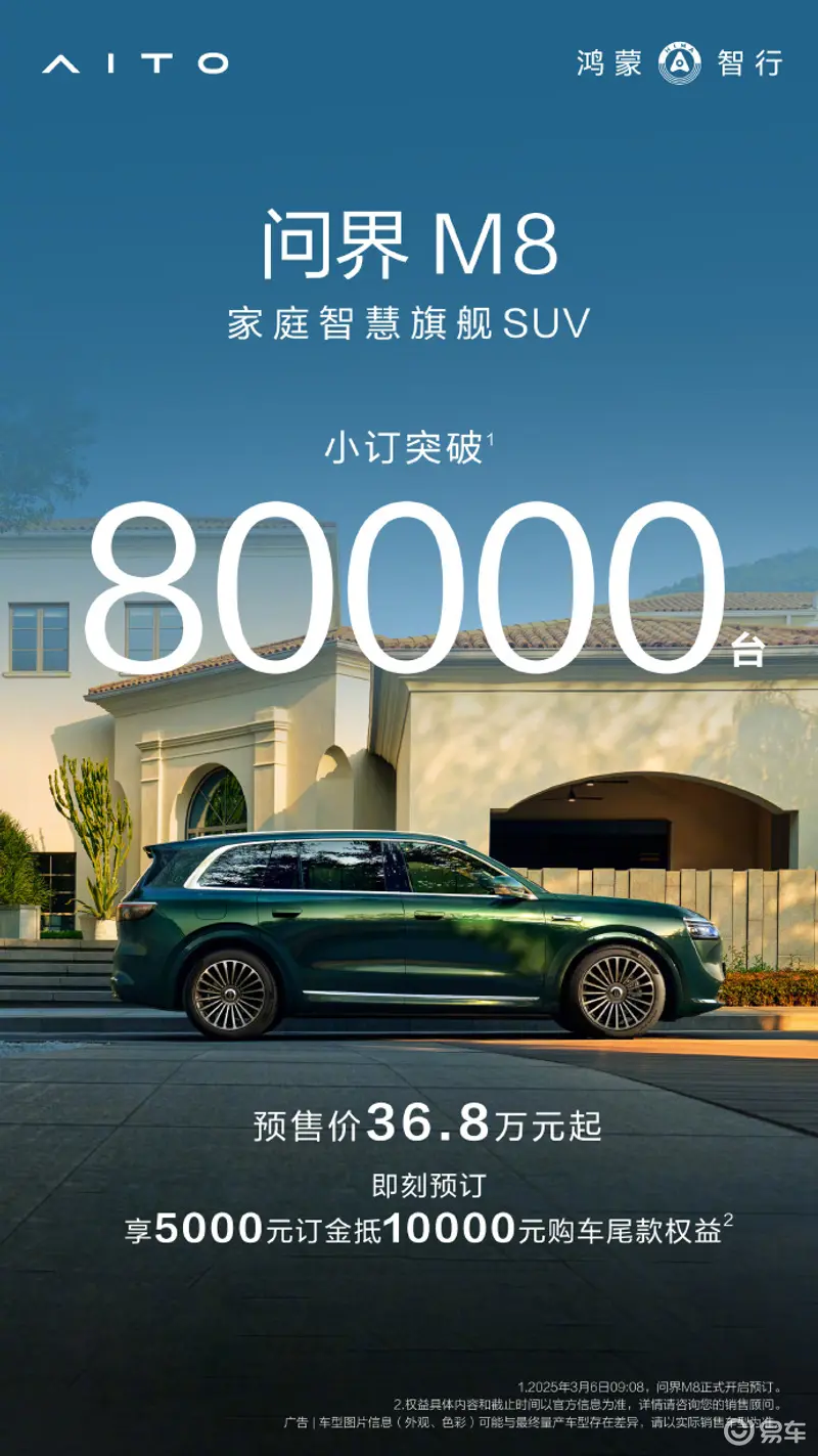 对任何车型而言,“小订破万”都意味着市场的充分认可。而在价格战白热化的2025年,若某款预售价36万的车型能斩获8万小订订单,其市场号召力之强悍不言而喻。