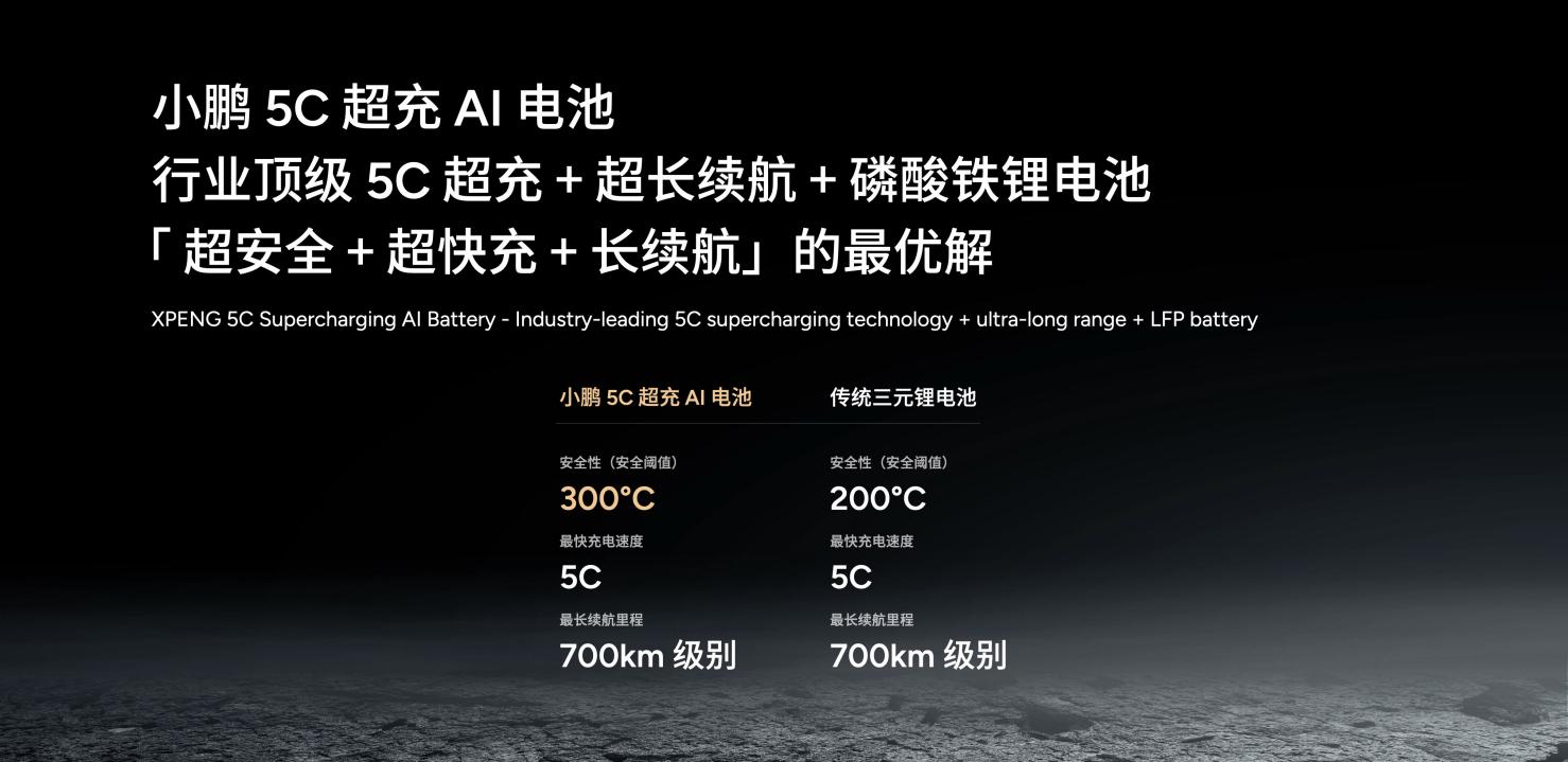 在AI汽车最为核心的“三电”领域,小鹏汽车具备领先行业的5C超充AI电池,无论是在安全性、充电速度和续航上,其表现都全面超越传统的三元锂电池和磷酸铁锂电池。例如搭载了小鹏5C超充AI电池的小鹏P7+超长续航Max旗舰版,可实现“10分钟补能420公里”,是“超安全+超快充+长续航”的最优解,为用户带来无焦虑的纯电出行体验。