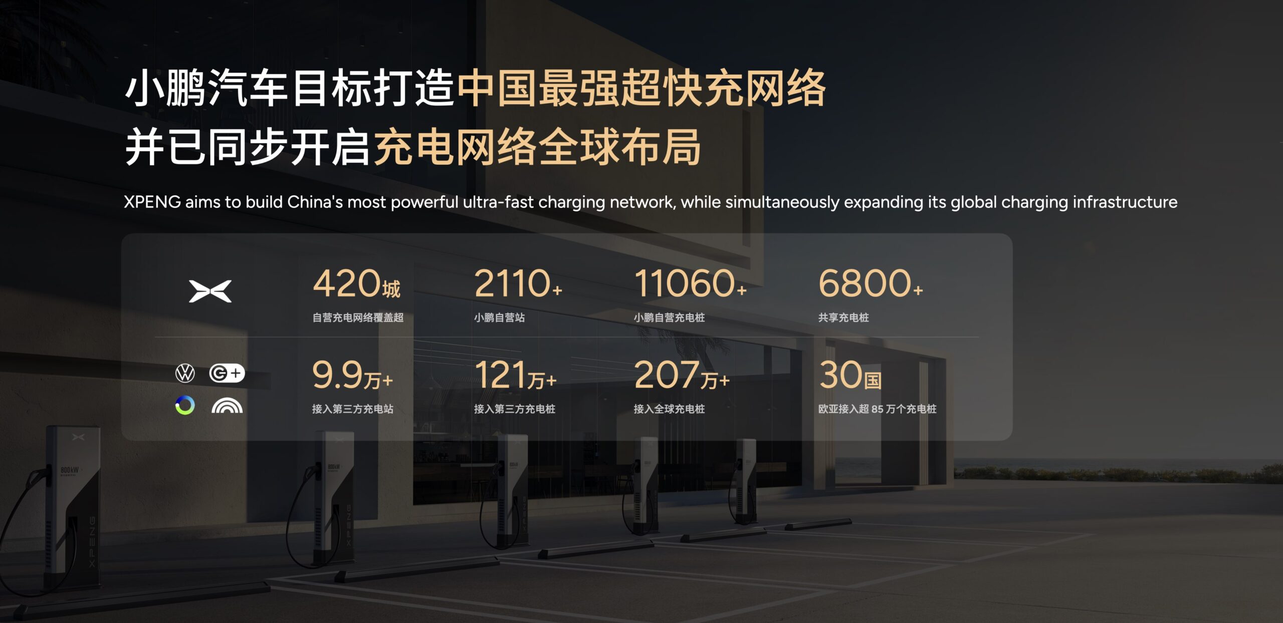 与此同时,小鹏汽车以“打造中国最强的超快充网络”为目标,构建了一个覆盖全国420座城市的自营充电网络。截至目前,小鹏自营充电站已超过2,110个、自营充电桩超过1,1060个,共享充电桩超6,800个。此外,小鹏汽车还与国际能源巨头bp pulse、大众汽车集团(中国)、plugsurfing开展合作,共计接入近10万个第三方充电桩。在全球范围内,小鹏汽车也同步开启充电网络的布局,目前在全球已接入超过207万个充电桩。小鹏汽车期望让无论用户身处何地,都能享受到便捷的小鹏充电服务,真正实现出行无忧。