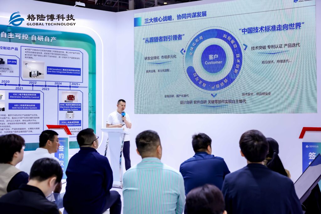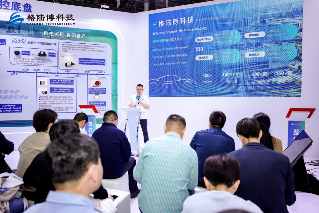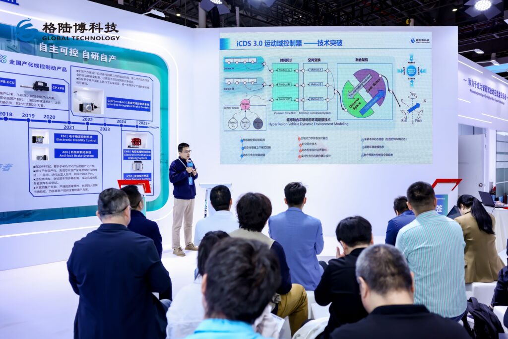 在2025年4月的上海国际车展上,格陆博科技以“三轴一体”智能底盘技术路线为核心,展示了全栈式线控底盘技术成果。
