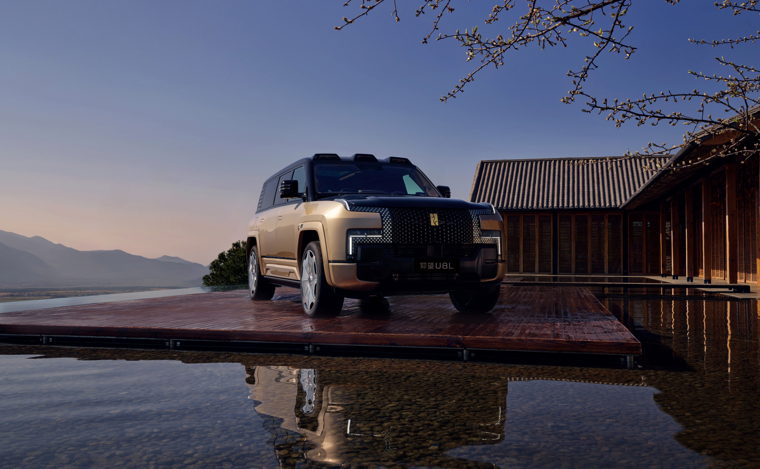 设计上,U8L延续了U8车系非常具有辨识度的、以“鼎”为灵感的前脸造型设计,同时提供了曜石黑配日曜金的全新黑金双色外观。U8L还针对前保险杠、D柱能量塔等车身细节做了熏黑简化处理,尾部取消了备胎及备胎罩,采用上下对开式的电动尾门设计,搭配极简式轮眉和全新的23英寸八孔锻造轮毂,更贴近城市豪华出行理念。