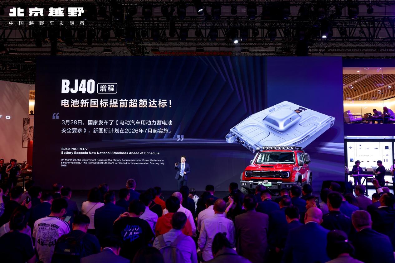 对于北京越野来说,在安全面前只有永不懈怠的自我超越,没有达标线,只有不断突破的更高标准。在BJ40增程车型研发期间,也就是2024年8月20日,BJ40增程的电池就已经提前达成《电动汽车用动力蓄电池安全要求》新国标,并且是提前超额达标。