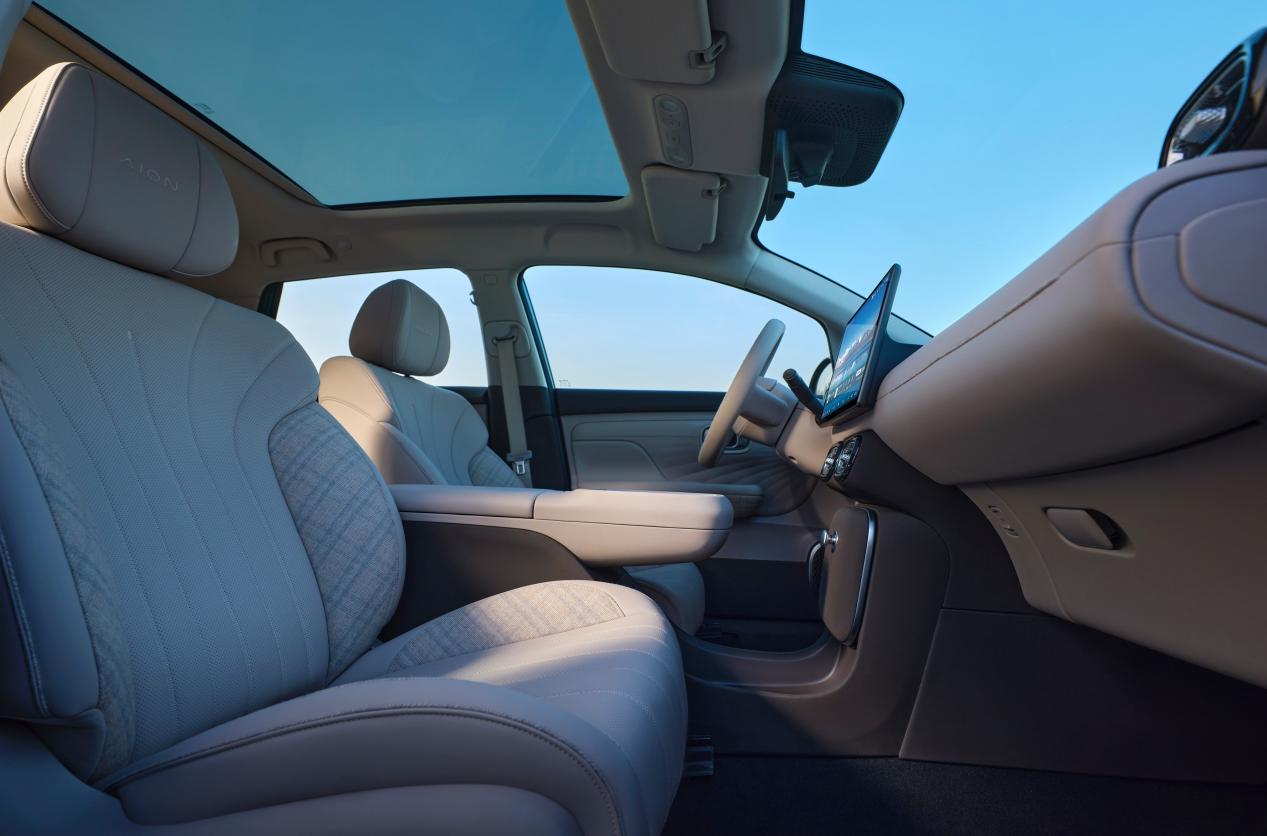 秉承埃安在空间上的独门绝技,10万级的埃安UT,竟然做到了媲美C级豪车的后排空间体验。按照郭麒麟的话来说,埃安UT的后排简直“大到夸张”。埃安UT长、宽、高为4270×1850×1575毫米,轴距2750毫米,同级第一。同级最宽敞905mm后排腿部空间,媲美C级豪华车;同级最宽的1330mm后排臀部空间,三人并排乘坐不碰腿。
