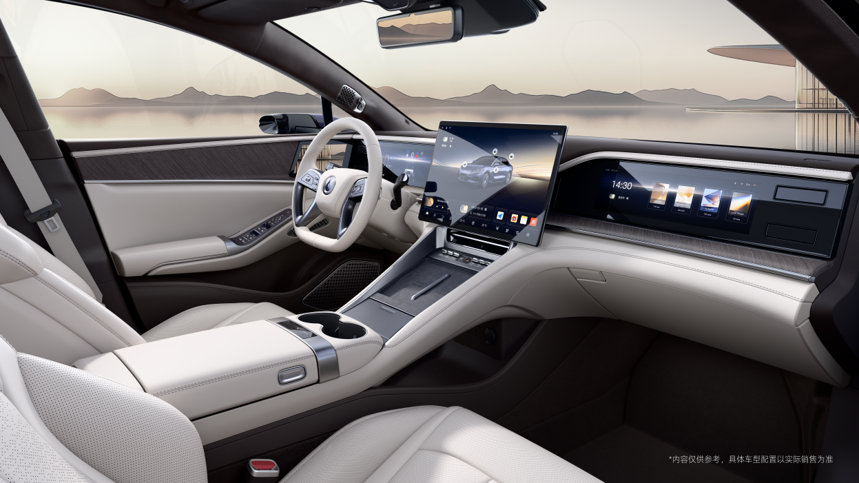 腾势Z9以优雅为基础,注入流畅动感的线条,前脸设计灵感源自“日冕”,大气而稳重的造型,勾勒出浑然天成的旗舰轿车气质。修长的车身比例、大比例的轮轴设计,尽显豪华车的沉稳与尊贵,让商务、家用都有面儿。相比腾势Z9GT,腾势Z9多了一份内敛和纯粹,注重将沉稳和优雅相结合,是别样的豪华视觉美感。