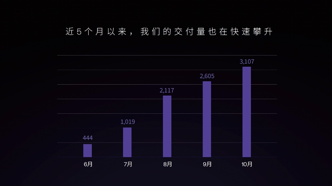自去年10月极越01上市以来,极越品牌始终聚焦智能化优势,不断精进产品和服务,赢得了市场广泛认可。随着极越07上市,极越以双车阵容大幅提升了品牌知名度及市场销量。今年10月,极越再创佳绩,交付量达到3107台,环比增长19%,相较6月份交付量增长6倍,这是对极越最好的“周年献礼”。