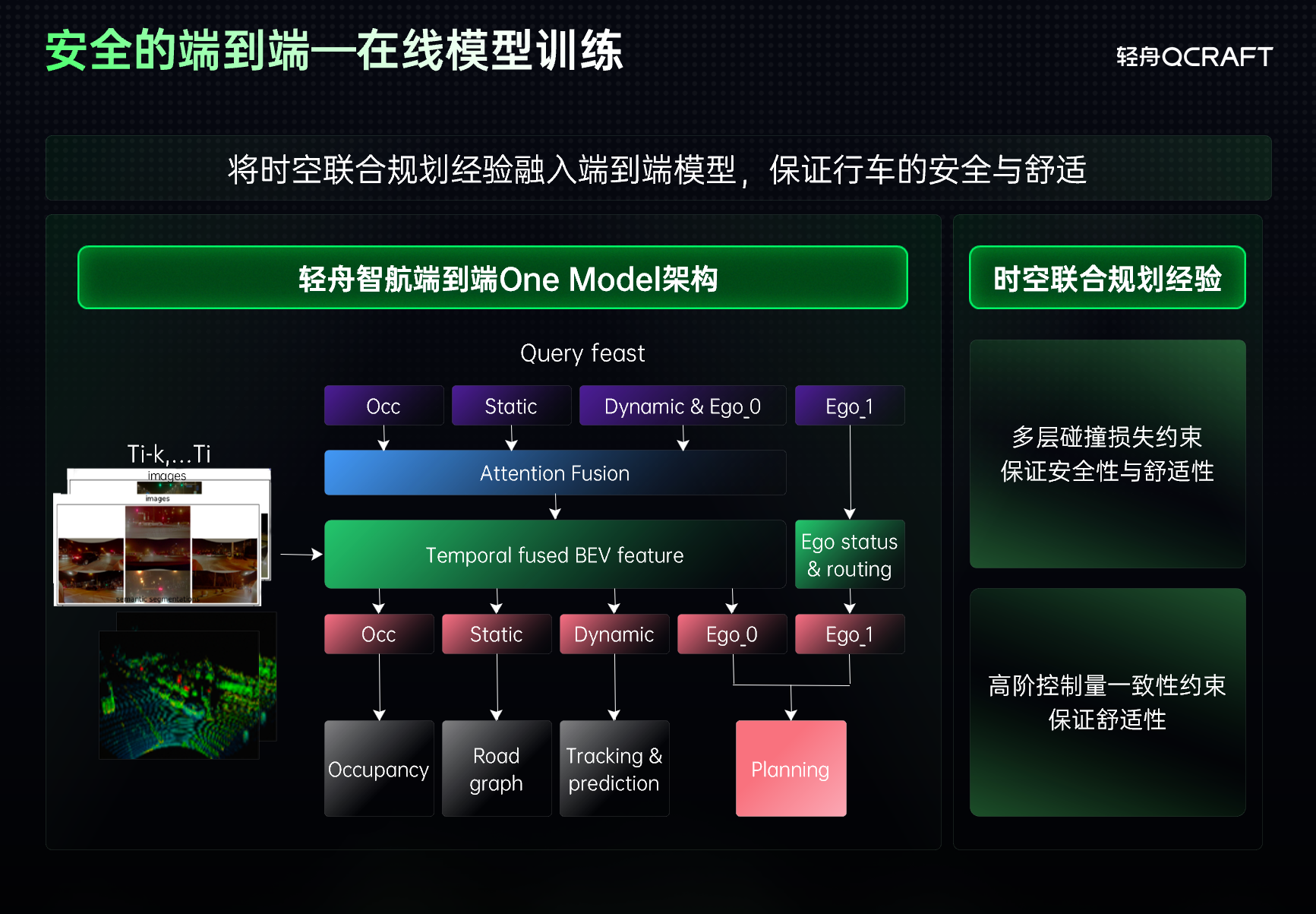 此外,该方案通过轻舟智航的软硬协同联合优化,实现了对单征程 6M 算力资源的充分利用和对激光雷达的有效应用,提升了性价比。其端到端 One – Model 的独特设计和对征程系列芯片的深入理解,减少了模型数量和上下文切换开销,提升了系统稳定性,同时精简了场景代码,降低了系统延迟,释放了 CPU 资源用于主动安全功能。