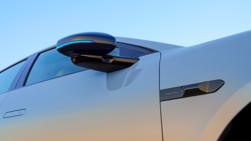 小鹏MONA M03 Max后视镜升级为极简无边框设计,集加热、折叠、记忆、倒车翻转等功能于一体,同时加入了辅助驾驶小蓝灯,兼顾美学与实用性。