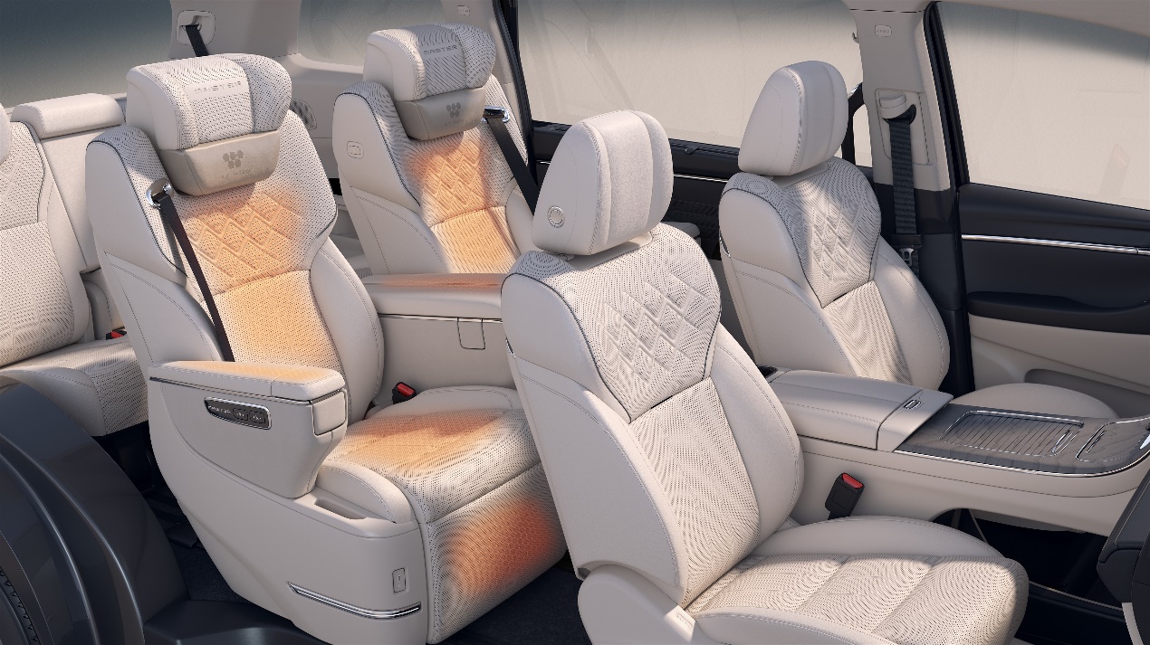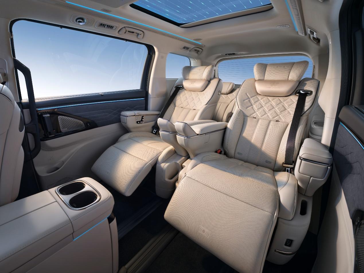 为了进一步提升乘坐舒适度,座椅表层采用了全粒面Nappa真皮与超软包覆材质,使用德国杜克普特种缝纫设备,以0.5毫米的缝纫精度一针一线地打造细腻触感。16向全电动记忆座椅靠背调节角度可达173度,接近完全平躺,为每一位乘客精准匹配最合适的坐姿,带来极致的舒适享受。
