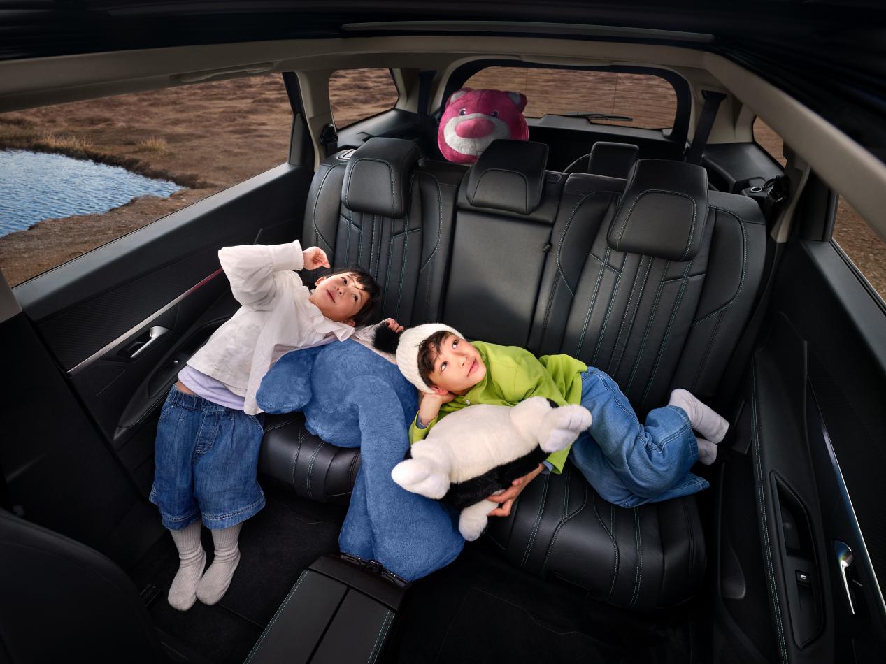 5+2灵动大空间,从功能到情感的全面升维。作为以入门5座价格即可购入的7座车型,2025款5008以2840mm超长轴距奠定空间基础,第二排标准腿部空间达840mm、宽度达1510mm,即使是身材高大的乘客也能舒展自如;第三排独立座椅支持隐藏、拆卸,5座与7座模式自由切换,实现“大5亦可7”,满足日常通勤与全家出游的双重需求;将二排放倒、三排隐藏可扩展后备箱容积至2040L,轻松容纳婴儿车、露营装备等大件物品,实现载物自由;全车注重人性化细节,设计了30处储物空间,前排中央扶手集成冷藏与照明功能,夏日冷饮、随身物品皆可触手可及。