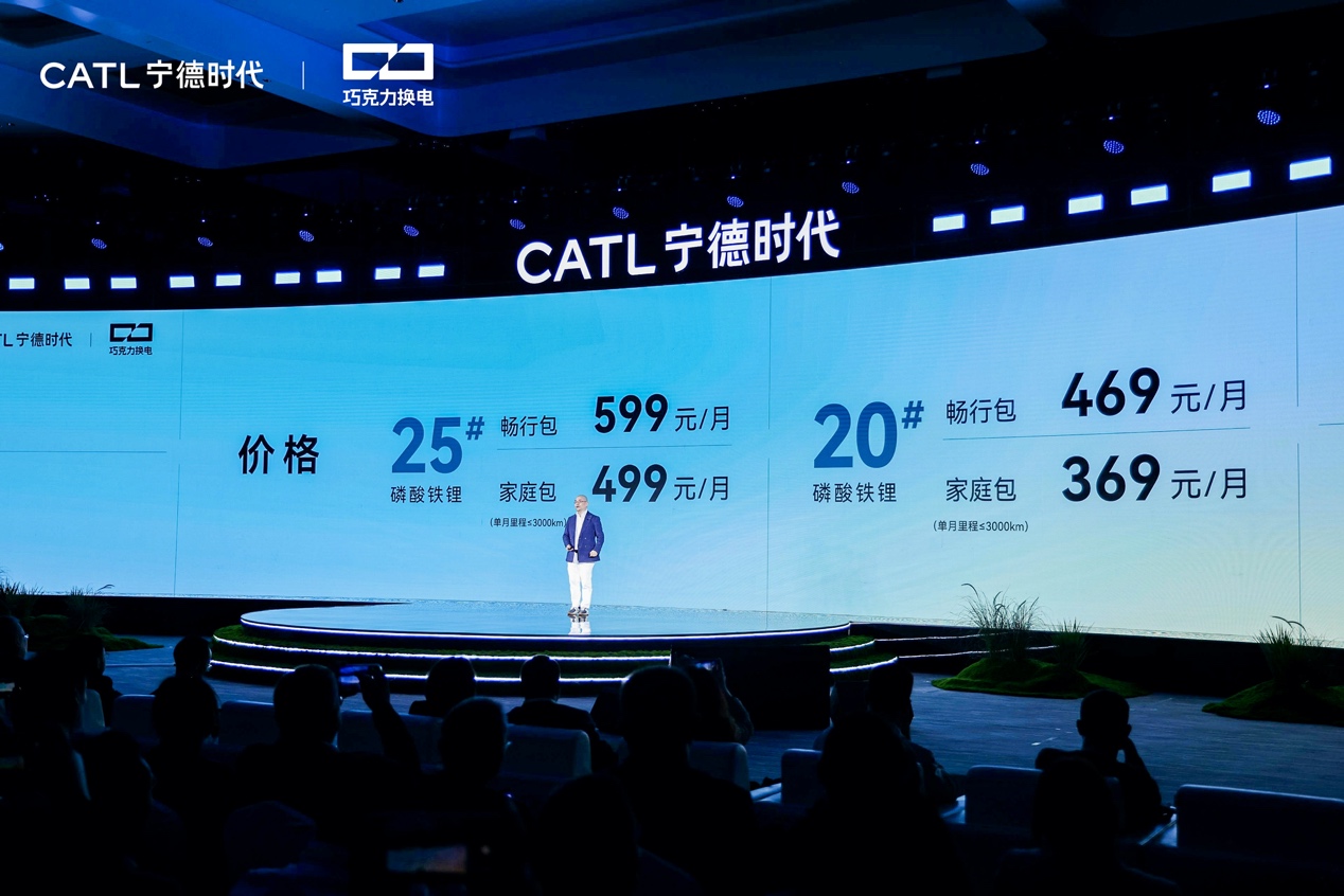 宁德时代公布了首先推向市场的“磷酸铁锂版”换电电池租赁价格:25#换电畅行包,每月不限里程599元,家庭包月租499元;20#换电畅行包,月租469元,家庭包月租369元。