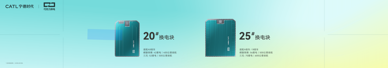 宁德时代时代电服CEO杨峻介绍,20#换电块磷酸铁锂版本配电42度,对应续航里程400公里;三元版本为52度电,可续航500公里;25#换电块磷酸铁锂可配电56度,续航500公里;三元版本配电70度电,可续航600公里。两款标准换电块,分别适配A0级和A/B级车。