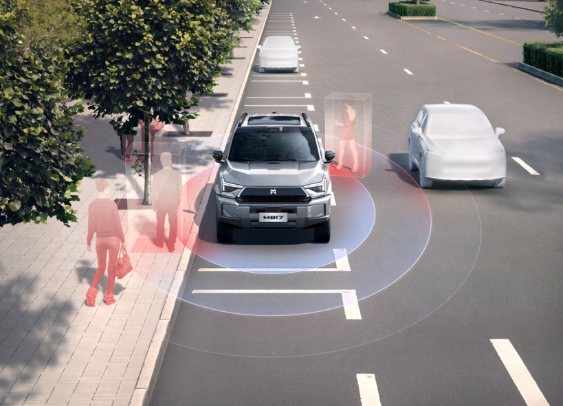 猛士M817的全维防碰撞系统CAS 4.0系统,实现4-150km/h行车状态下刹停避障、130km/h可刹停静止障碍物的全时速守护;前向+后向+侧向23项主动安全功能的360°全方向守护;具备任何种类任何状态的目标识别检出能力的全目标守护;首创路面自适应AEB,湿滑泥泞路面也能刹停的全天候守护;具备人驾和辅助驾驶时都能保障主动安全的全场景守护,让用户出行更安心、更放心、更省心。