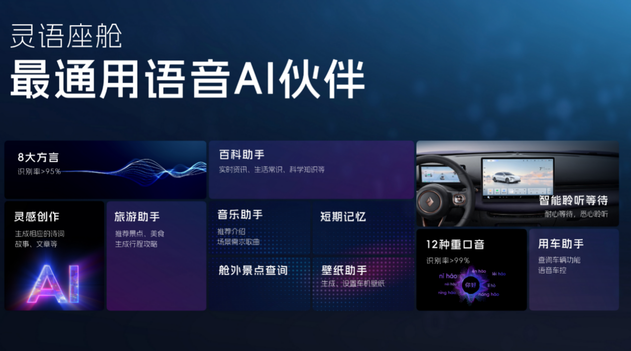 电智化时代,万物皆可AI。基于自主研发的灵语AI中枢大模型,灵语座舱实现感知升级、理解升级、智能调度、表达升级和交互升级,加速AI座舱全民普及,实现全民人车交互体验的代际跃升。