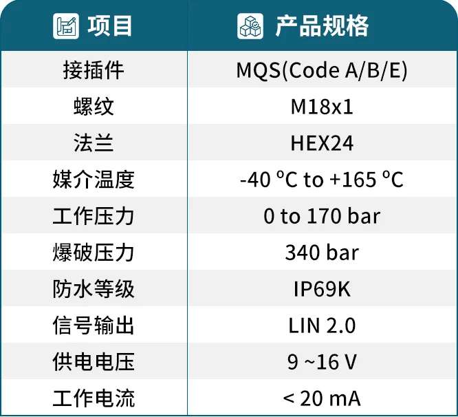 森萨塔科技二氧化碳温度压力传感器采用了MQS接插件,并通过不同的Code和颜色来区分高压、中压和低压三款传感器。使用M18x1的安装螺纹和HEX24的安装法兰。此外,传感器的安装接口和信号模式还可以根据客户需求进行定制化选择,以满足不同应用场景的特殊要求。