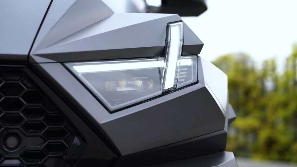 尤其是汲取的东方醒狮的灵感,秉承了雄魂的设计理念。例如前格栅采用军车梯形狮吼式阵列式布局,机舱盖棱线与硬朗型面呼应,刀锋式的肩线,让锐棱尽显。在磅礴的气势下前大灯却十分内敛,这叫止戈为武;尾灯是短横长竖,短的凸出、长的锐利,这叫剑指苍穹。而厚重的下包围、带爬梯的行李架和车尾小书包又彰显了他的野性,也把他的锐气隐藏了不少。