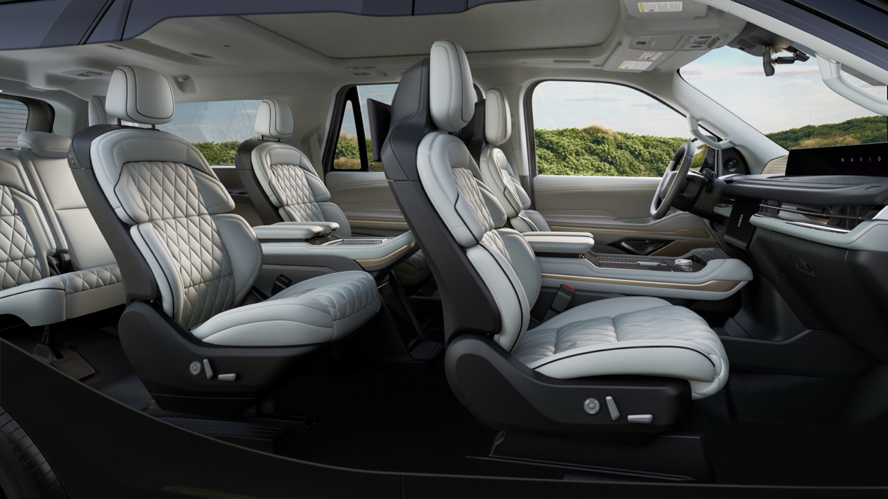 全新一代林肯领航员拥有剧院包厢般的2-2-3格局,全部乘员都能享有领航者高坐姿与统帅者视野。“七座皆上宾”的全新一代林肯领航员,重定七座格局,细琢豪华肌理,格局瞬间打开。