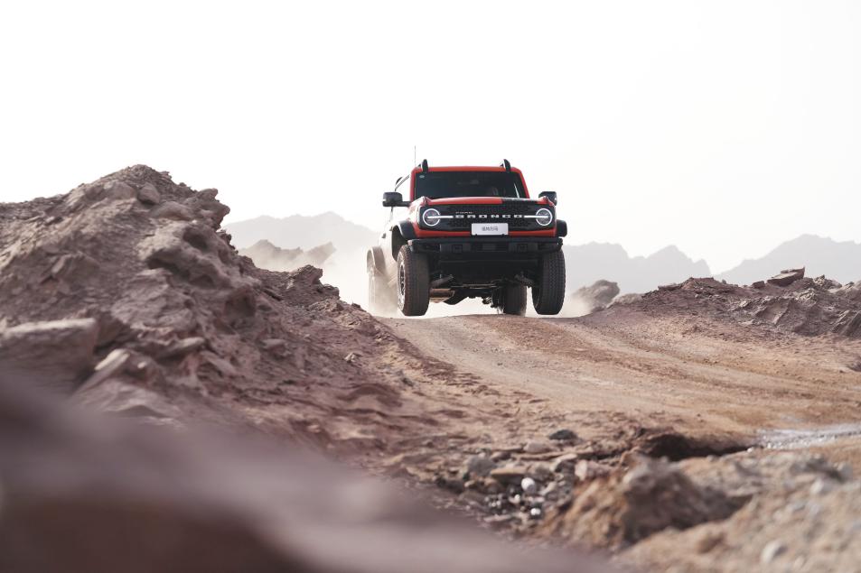 此外,座椅采用赛车级Dynamica超纤仿麂皮材质,肩部位置的“FORD BRONCO”字标彰显不凡身份,局部软包材质与沙漠同色,并模拟出仿若沙漠地表的立体肌理,带来真实的沙砾摩挲手感。专属装饰网兜的加入,使美观与实用性兼具,让每一次驾乘都充满仪式感。