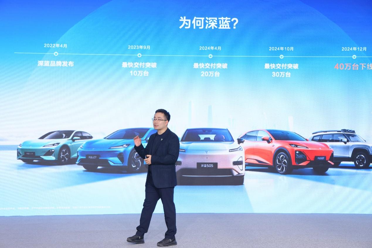 2024年12月30日,深蓝汽车总裁邓承浩在深蓝汽车第40万辆整车下线仪式上难掩激动。